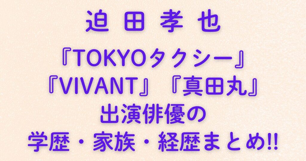 迫田孝也『TOKYOタクシー』『VIVANT』『真田丸』出演俳優の学歴・家族・経歴まとめ!!映画『TOKYOタクシー』(2025年11月公開)で、俳優・**迫田孝也(さこだ たかや)**さんが再び注目を集めています。 山田洋次監督との“3度目のタッグ”となる本作では、ダークな一面を持つ小川毅役に挑戦。 これまで『VIVANT』や『真田丸』など、数々の話題...