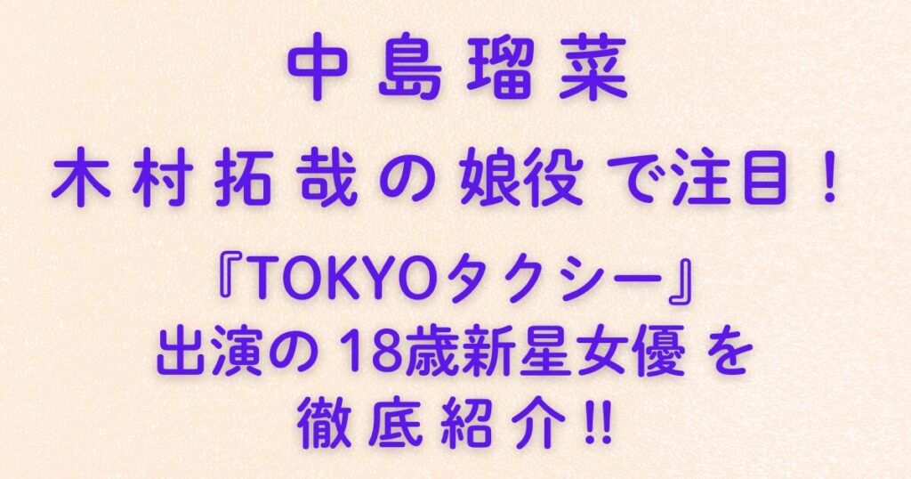 中島瑠菜|木村拓哉の娘役で注目!山田洋次監督『TOKYOタクシー』出演の18歳新星女優を徹底紹介!!2025年の映画界でいま最も注目されている若手女優、それが中島瑠菜(なかじま るな)さん。 山田洋次監督の最新作『TOKYOタクシー』で、木村拓哉さん演じる主人公の“娘役”に抜擢されたことで、一気に話題を集めています。 モデルとしては『Seventeen』専属...