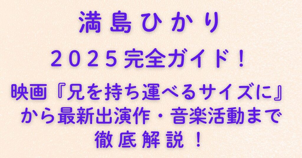 満島ひかり2025完全ガイド!映画『兄を持ち運べるサイズに』から最新出演作・音楽活動まで徹底解説!女優・満島ひかりさん。 その存在は、ただの演技派という枠を超え、**“生き方そのものが作品”**と言われるほど独特の輝きを放っています。 2025年は出演映画が続々と公開され、さらに音楽活動にも力を注ぐ年。 映画『兄を持ち運べるサイズに』で見せる深い...