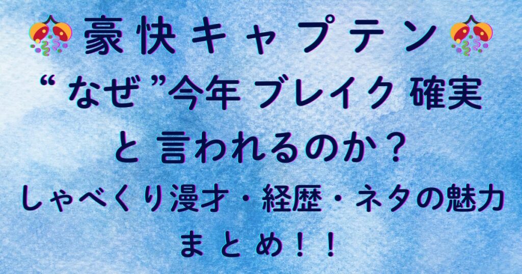 🎊豪快キャプテン🎊が“なぜ”今年ブレイク確実と言われるのか?しゃべくり漫才・経歴・ネタの魅力まとめ!!