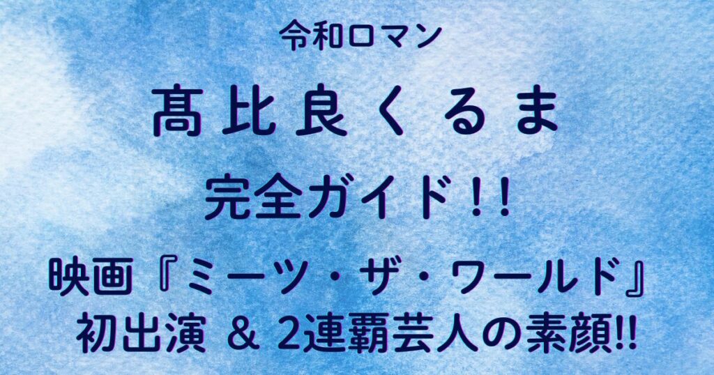 令和ロマン・髙比良くるま完全ガイド|映画『ミーツ・ザ・ワールド』初出演&2連覇芸人の素顔!!お笑い界でいま最も注目を集めるコンビ、令和ロマン。 そのツッコミ担当であり、知性派芸人としても知られるのが髙比良くるまさんです。 2023・2024年にかけてM-1グランプリ2連覇という快挙を達成し、名実ともに“令和のトップ芸人”へと上り詰めました。 そ...