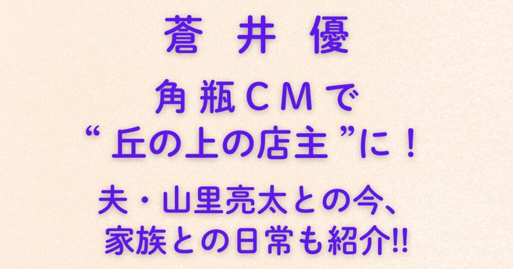 蒼井優、角瓶CMで“丘の上の店主”に!夫・山里亮太との今、家族との日常も紹介!!2025年、女優・蒼井優さんが新たに挑戦したのは、サントリーウイスキー「角瓶」の最新CMシリーズ。 丘の上にあるバーで穏やかにお客を迎える“店主”として登場し、落ち着いた空気感で大人の時間を演出しています。 共演には染谷将太さん、小林聡美さん、RAD...