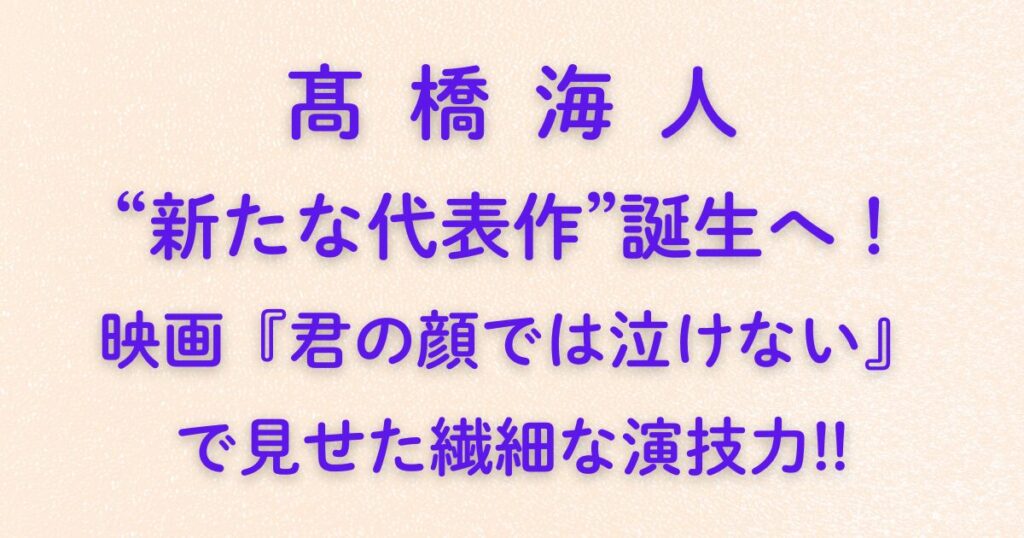 髙橋海人“新たな代表作”誕生へ!映画『君の顔では泣けない』で見せた繊細な演技力!!King & Princeの髙橋海人さんが主演を務める映画『君の顔では泣けない』。 これが「彼の新たな代表作になる」と、すでに多くのファンや映画関係者から注目を集めています。 アイドルとしての華やかさの裏にある、繊細でリアルな演技力がついに開花。 ...