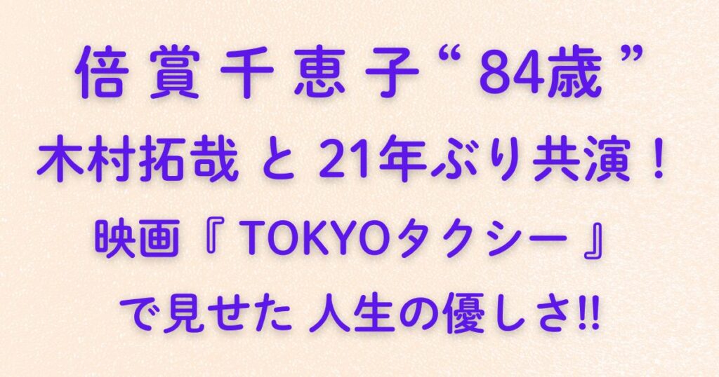 倍賞千恵子84歳、木村拓哉と21年ぶり共演!映画『TOKYOタクシー』で見せた人生の優しさ!!84歳にしてなお現役の女優として輝き続ける倍賞千恵子さんが、木村拓哉さんと21年ぶりに実写共演する映画『TOKYOタクシー』(2025年11月21日公開)。 監督は、日本映画界の巨匠・山田洋次さん。 松竹創業130周年記念作品としても注目されています。 人生の...
