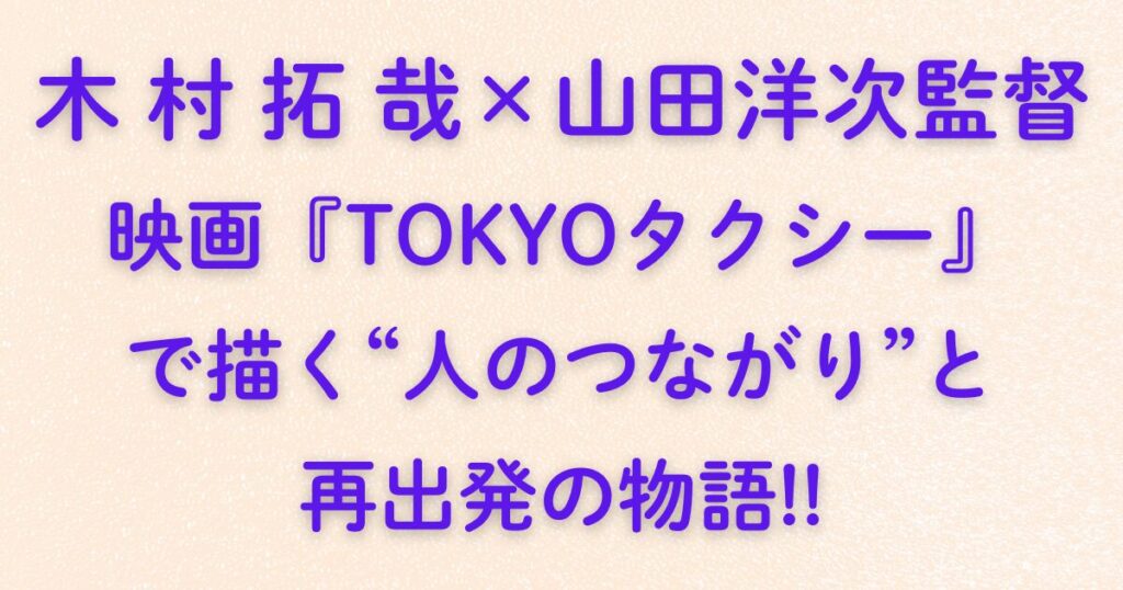 🎬木村拓哉×山田洋次監督|映画『TOKYOタクシー』で描く“人のつながり”と再出発の物語!!木村拓哉さんが主演を務める映画『TOKYOタクシー』は、山田洋次監督91本目の監督作として2025年11月21日に公開される注目作です。 タクシー運転手・宇佐美浩二(木村拓哉さん)と、85歳のマダム・高野すみれ(倍賞千恵子さん)が偶然出会い、人生を見つめ...