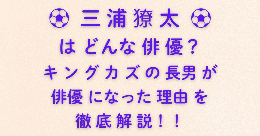 ⚽ 三浦獠太 ⚽ はどんな俳優?キングカズの長男が俳優になった理由を徹底解説!!