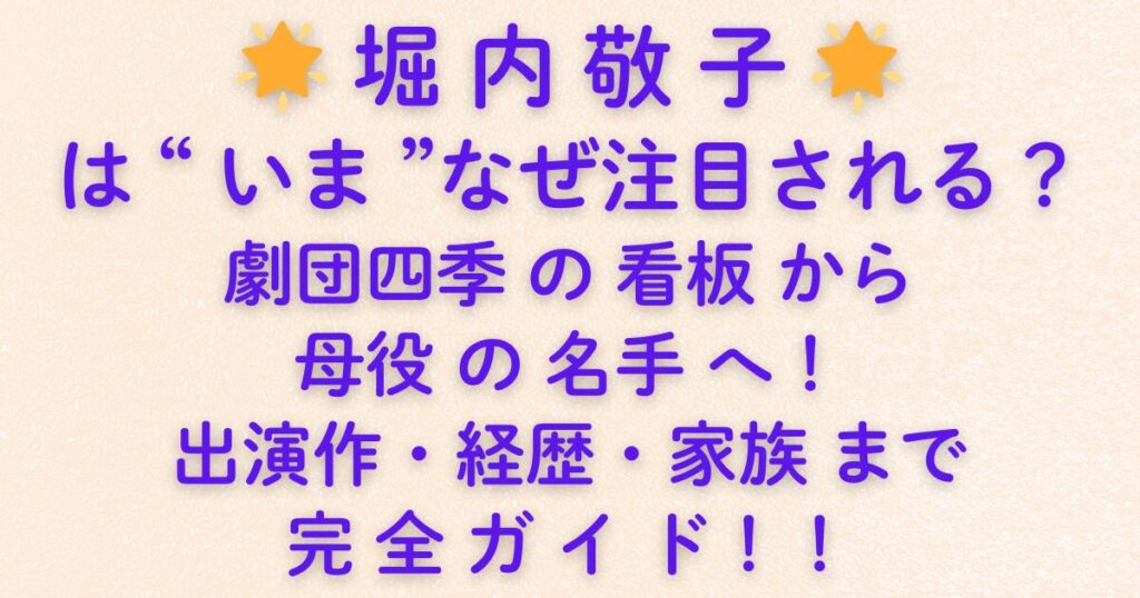 🌟堀内敬子🌟は“いま”なぜ注目される?劇団四季の看板から母役の名手へ!出演作・経歴・家族まで完全ガイド!!