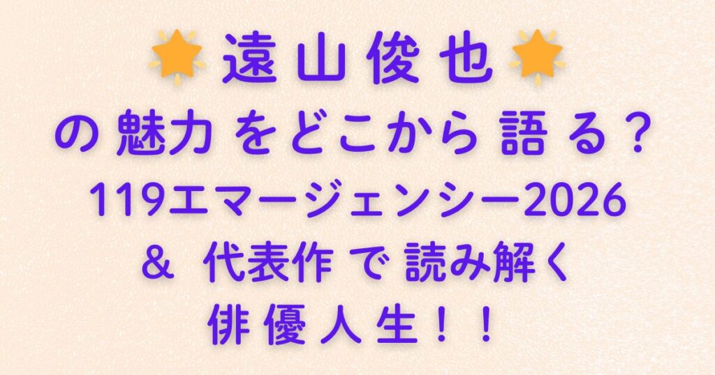 🌟遠山俊也🌟の魅力をどこから語る?119エマージェンシー2026&代表作で読み解く俳優人生!!