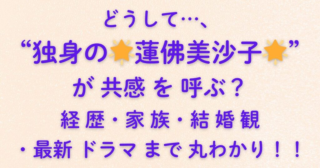 どうして“独身の🌟蓮佛美沙子🌟”が共感を呼ぶ?経歴・家族・結婚観・最新ドラマまで丸わかり!!