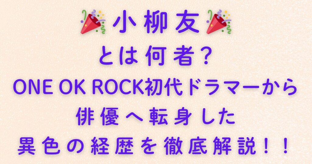 俳優・**小柳友(こやなぎ ゆう)さん**と聞いて、「ウルトラマン」「大河ドラマ」「舞台俳優」といったキーワードを思い浮かべる人も多いかもしれません。 しかし実は彼、ONE OK ROCKの初代ドラマーという驚きの過去を持つ人物でもあります。 音楽と演技... -