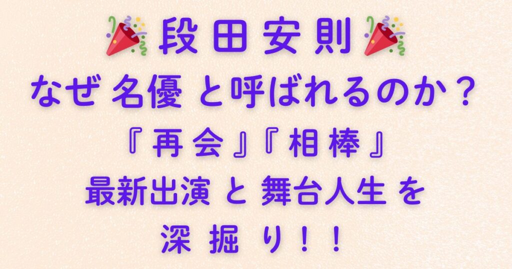 🎉 段田安則 🎉 はなぜ名優と呼ばれるのか?『再会』『相棒』最新出演と舞台人生を深掘り!!