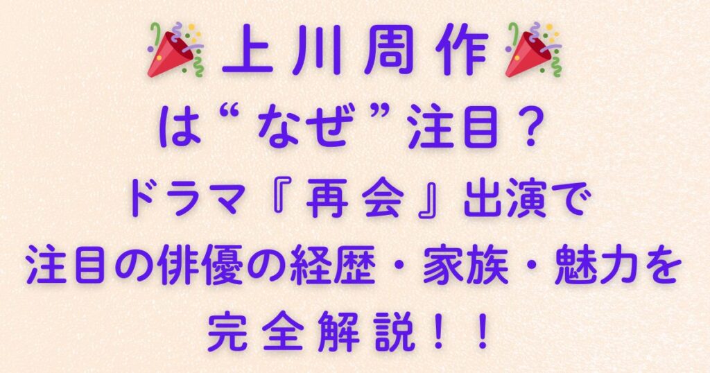 🎉 上川周作 🎉 はなぜ注目?ドラマ『再会』出演で注目の俳優の経歴・家族・魅力を完全解説!!