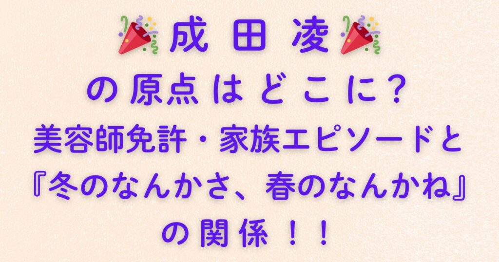 🎉 成田凌 🎉 の原点はどこに?美容師免許・家族エピソードと『冬のなんかさ、春のなんかね』の関係!!