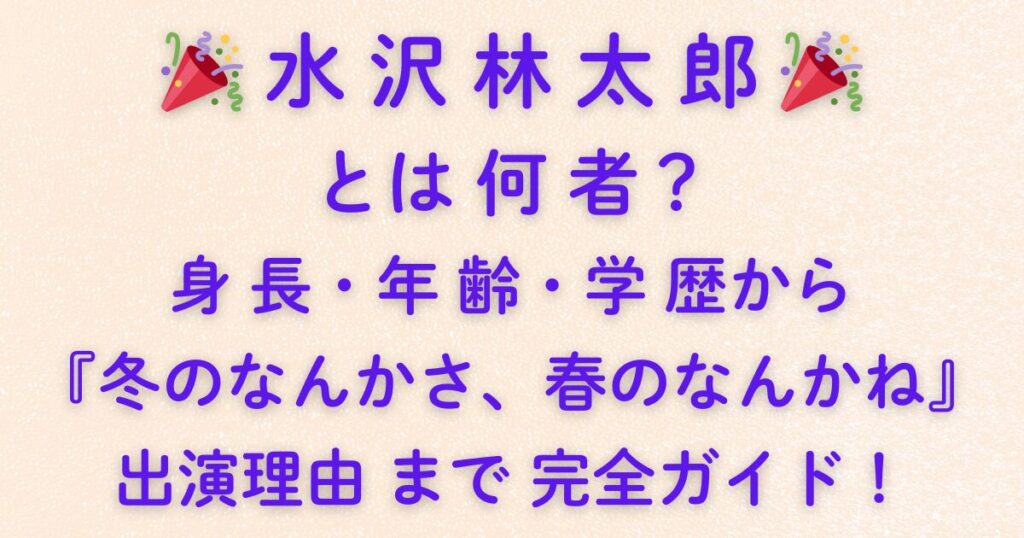 🎉 水沢林太郎 🎉 とは何者?身長・年齢・学歴から『冬のなんかさ、春のなんかね』出演理由まで完全ガイド!
