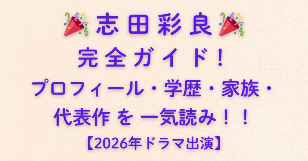 🎉 志田彩良 🎉 完全ガイド!プロフィール・学歴・家族・代表作を一気読み【2026年ドラマ出演】