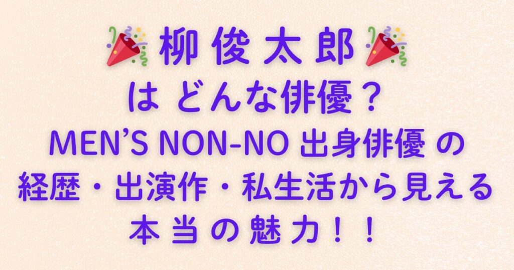 モデル出身の俳優は数多くいるけれど、その中で**「気づけば作品に欠かせない存在」**になっている人は、実はそう多くありません。 柳俊太郎さんは、まさにその一人です。 MEN’S NON-NOで12年間トップモデルとして活躍しながら、俳優としては大河ドラマや... -