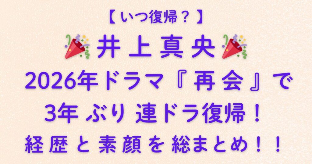 【いつ復帰?】🎉井上真央🎉が2026年ドラマ『再会』で3年ぶり連ドラ復帰!経歴と素顔を総まとめ!!