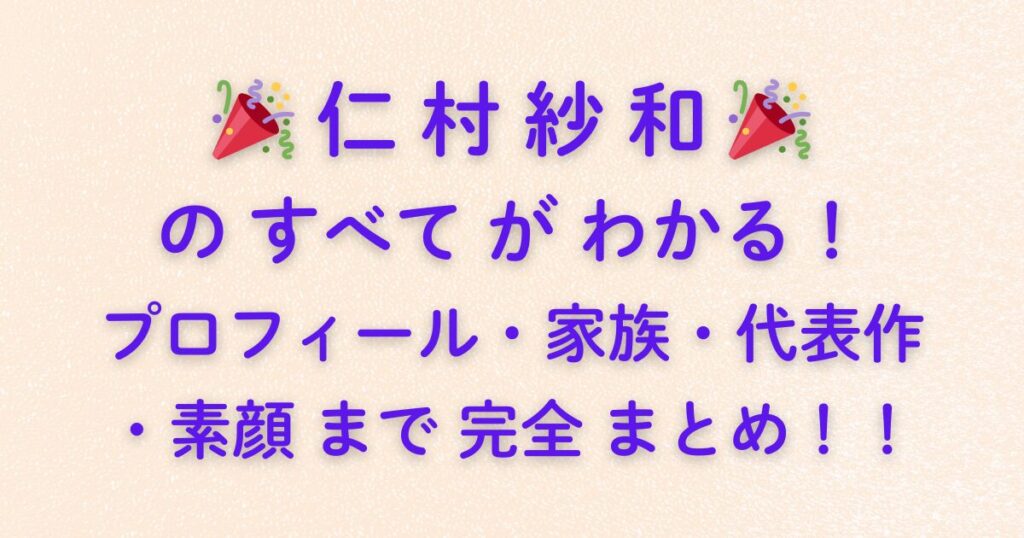 🎉仁村紗和🎉のすべてがわかる!プロフィール・家族・代表作・素顔まで完全まとめ!!