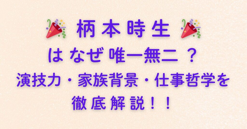 🎉柄本時生🎉はなぜ唯一無二?演技力・家族背景・仕事哲学を徹底解説!!