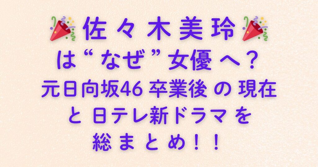 🎉佐々木美玲🎉は“なぜ”女優へ?元日向坂46卒業後の現在と日テレ新ドラマを総まとめ!!
