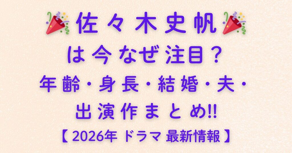 🎉佐々木史帆🎉は今なぜ注目?年齢・身長・結婚・夫・出演作まとめ【2026年ドラマ最新情報】