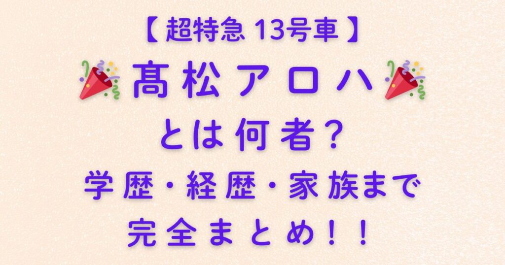 【超特急13号車】🎉髙松アロハ🎉とは何者?学歴・経歴・家族まで完全まとめ!!