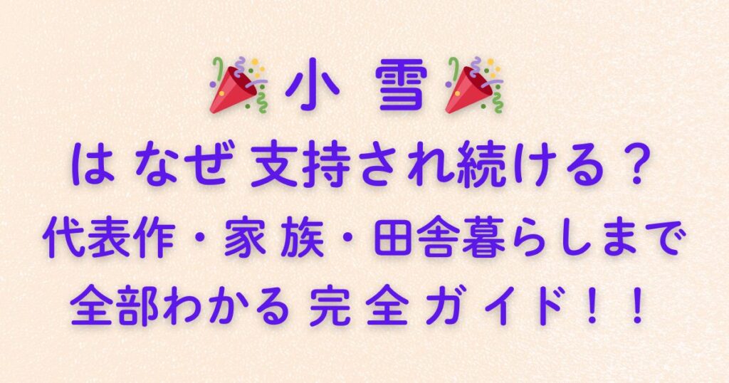 🎉 小 雪 🎉 はなぜ支持され続ける?代表作・家族・田舎暮らしまで全部わかる完全ガイド!!