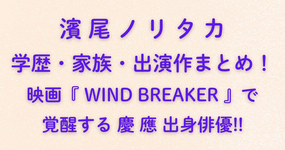 濱尾ノリタカの学歴・家族・出演作まとめ!映画『WIND BREAKER』で覚醒する慶應出身俳優!!