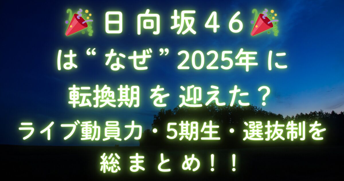 本記事では、2025年の日向坂46が“なぜ転換期を迎えたのか”を、ライブ動員力・メンバー構成・運営方針の3つの視点から、わかりやすく総まとめします。