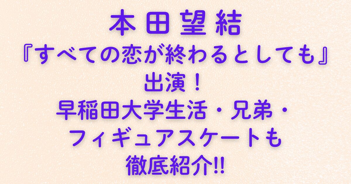 この記事では、最新ドラマ出演情報・早稲田大学での学生生活・仲良し兄弟エピソード・フィギュアスケートの経歴まで、本田望結さんの魅力をまるごと徹底紹介していきます!