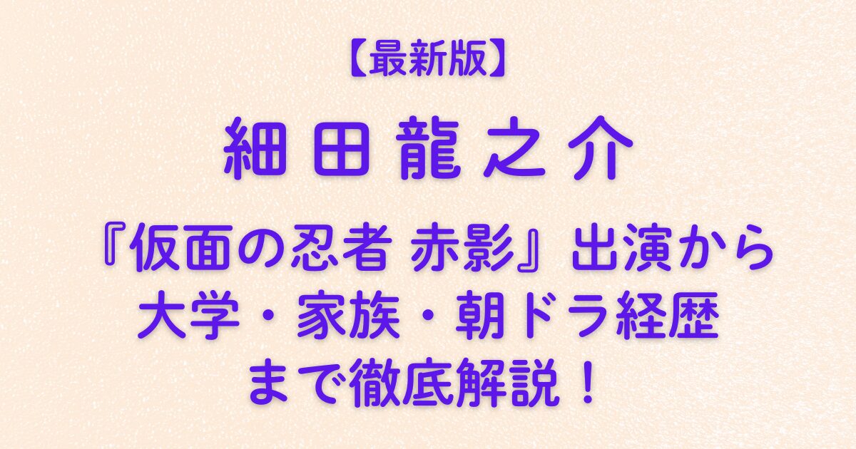 【最新版】細田龍之介|『仮面の忍者 赤影』出演から大学・家族・朝ドラ経歴まで徹底解説!