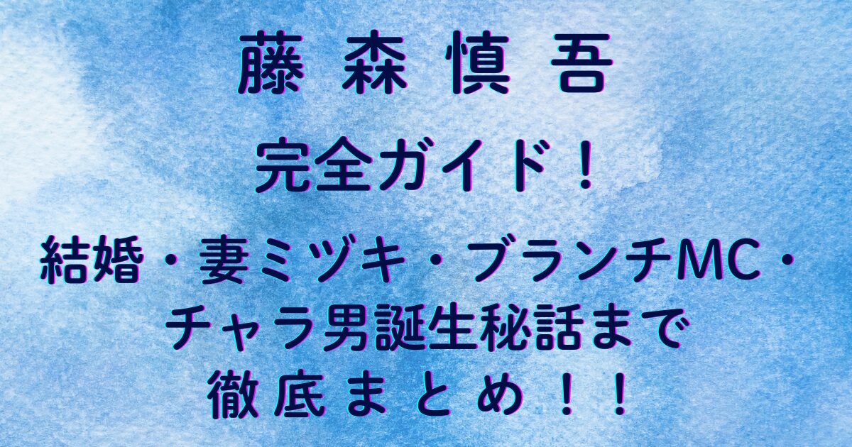 🟦 藤森慎吾 完全ガイド!結婚・妻ミヅキ・ブランチMC・チャラ男誕生秘話まで徹底まとめ!!
