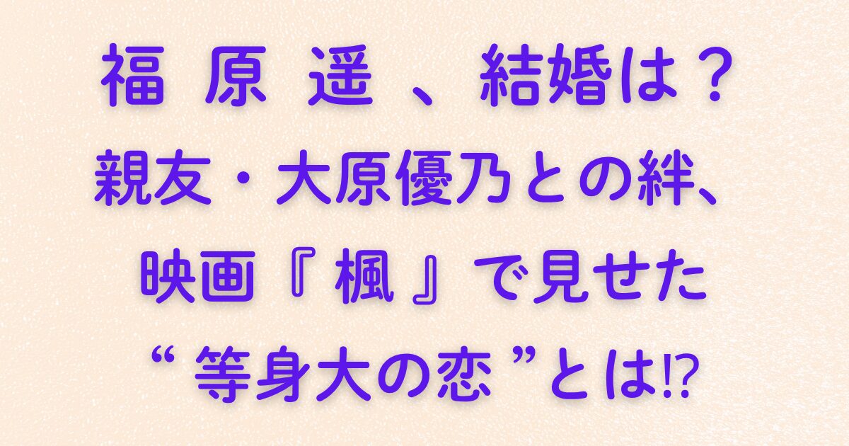 福原遥、結婚は?親友・大原優乃との絆、映画『楓』で見せた“等身大の恋”とは⁉