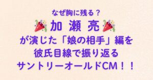 サントリーオールドCM「娘の相手」編がいまでも多くの人の心に残るのは、父と娘の感動話だからではなく、**「娘が大人になる瞬間の静かな心の揺れ」**を描いているからです。