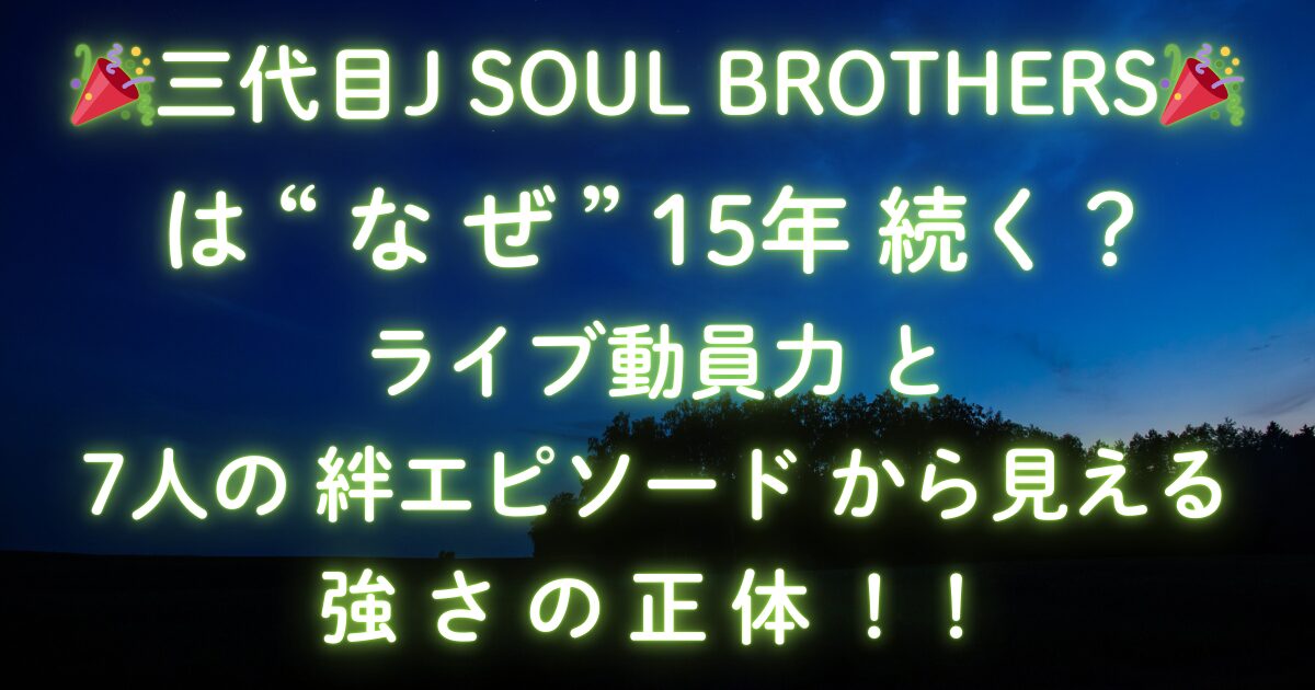 🎉三代目J SOUL BROTHERS🎉は“なぜ”15年続く?ライブ動員力と7人の絆エピソードから見える強さの正体!!
