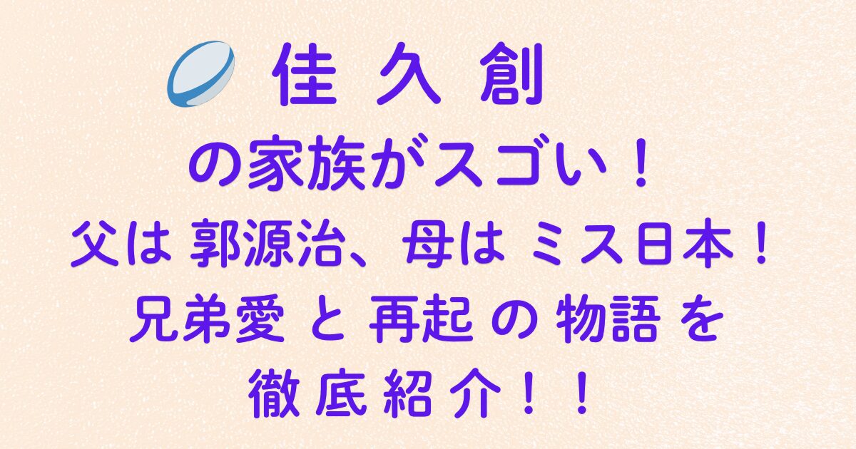 今回は、ラグビー選手から俳優へと転身した佳久創さんの“再起”を支えた家族の絆と感動エピソードをたっぷりご紹介します。