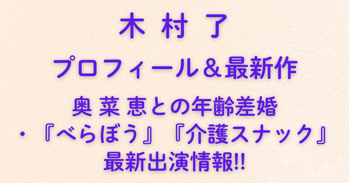 本記事では、木村了さんのプロフィール・結婚エピソード・2025年最新作情報をたっぷりご紹介します。