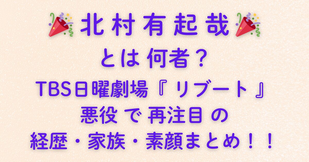 本記事では、『リブート』での役柄を入り口に、これまでの経歴、家族との関係、そして人柄が伝わるエピソードまで、わかりやすくまとめていきます。