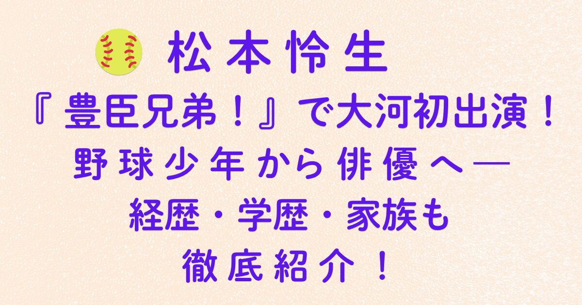 🥎  松本怜生が『豊臣兄弟!』で大河初出演!野球少年から俳優へ—経歴・学歴・家族も徹底紹介!