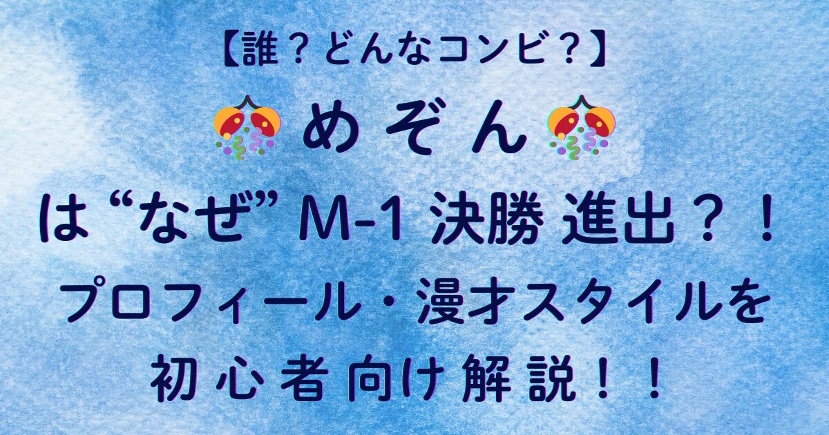 この記事ではめぞんがなぜM-1決勝へ進めたのか、その理由と魅力**をわかりやすく紹介します。