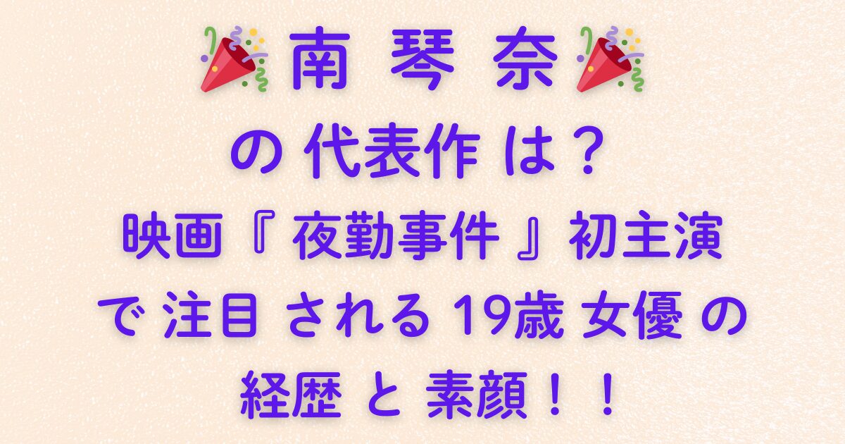 この記事では、**南琴奈の代表作は何なのか?**という視点から、これまでの経歴、注目作、そして彼女の素顔までを、やさしく紐解いていきます。