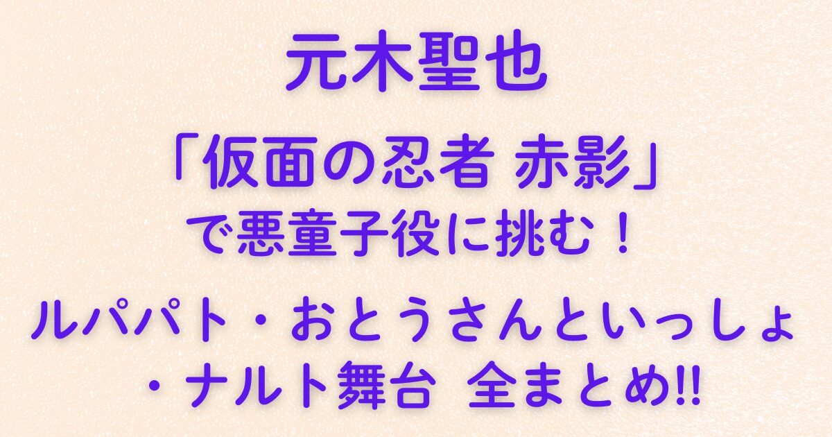 俳優・元木聖也さんが、2025年10月スタートの話題作**『仮面の忍者 赤影』で悪童子役に抜擢!**