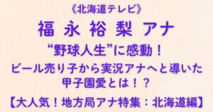 これからも「どさんこワイド」で見せる笑顔と、ラジオでの優しい語りに注目ですね。