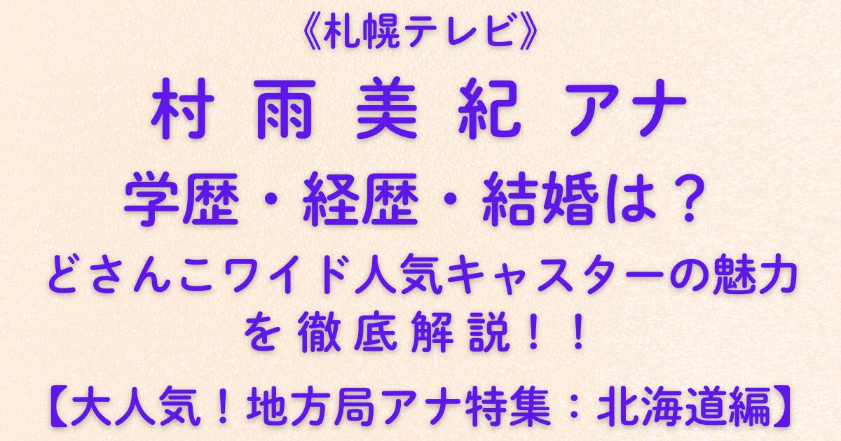 本記事では、村雨美紀アナの学歴・経歴・結婚情報、そして彼女が北海道で愛される理由を、報知新聞やSTV公式情報をもとに徹底解説します!