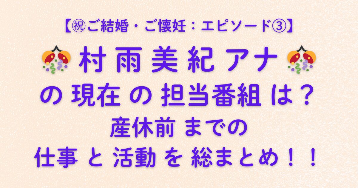 村雨美紀アナは、結婚や妊娠という人生の節目を迎えながらも、