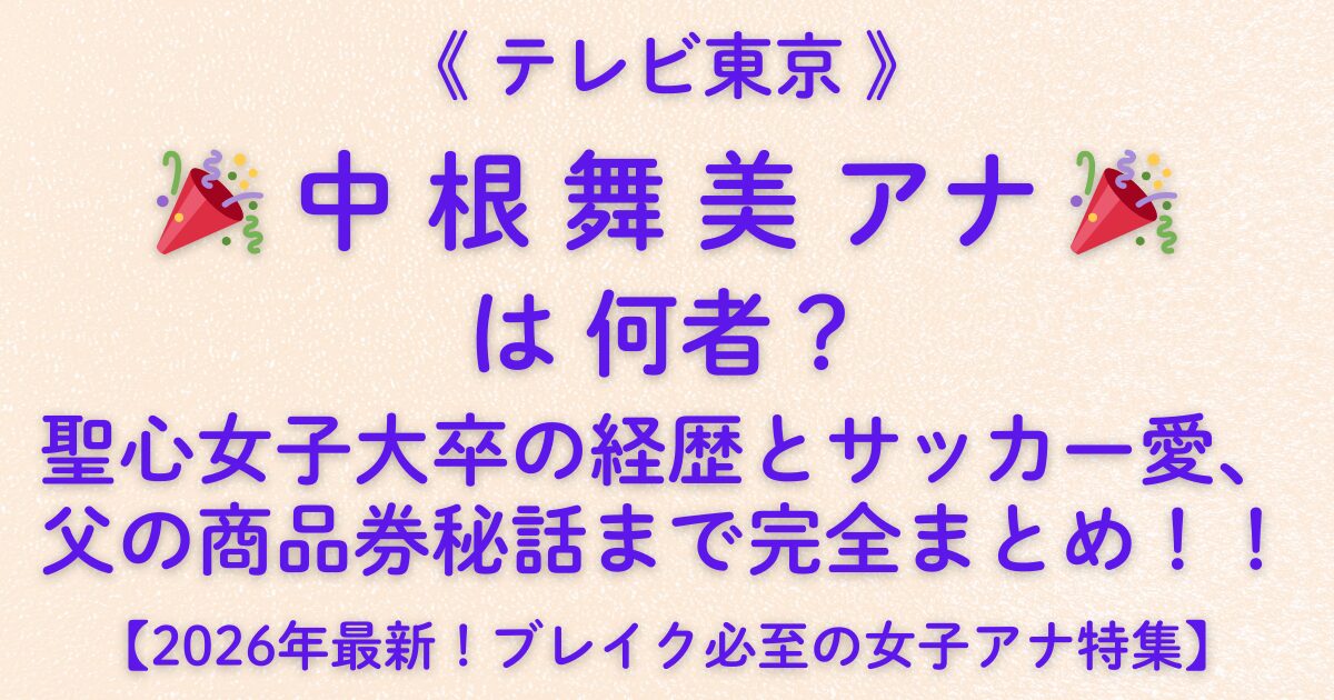 《テレビ東京》🎉 中根舞美アナ 🎉 は何者?聖心女子大卒の経歴とサッカー愛、父の商品券秘話まで完全まとめ!!【2026年最新!ブレイク必至の女子アナ特集】