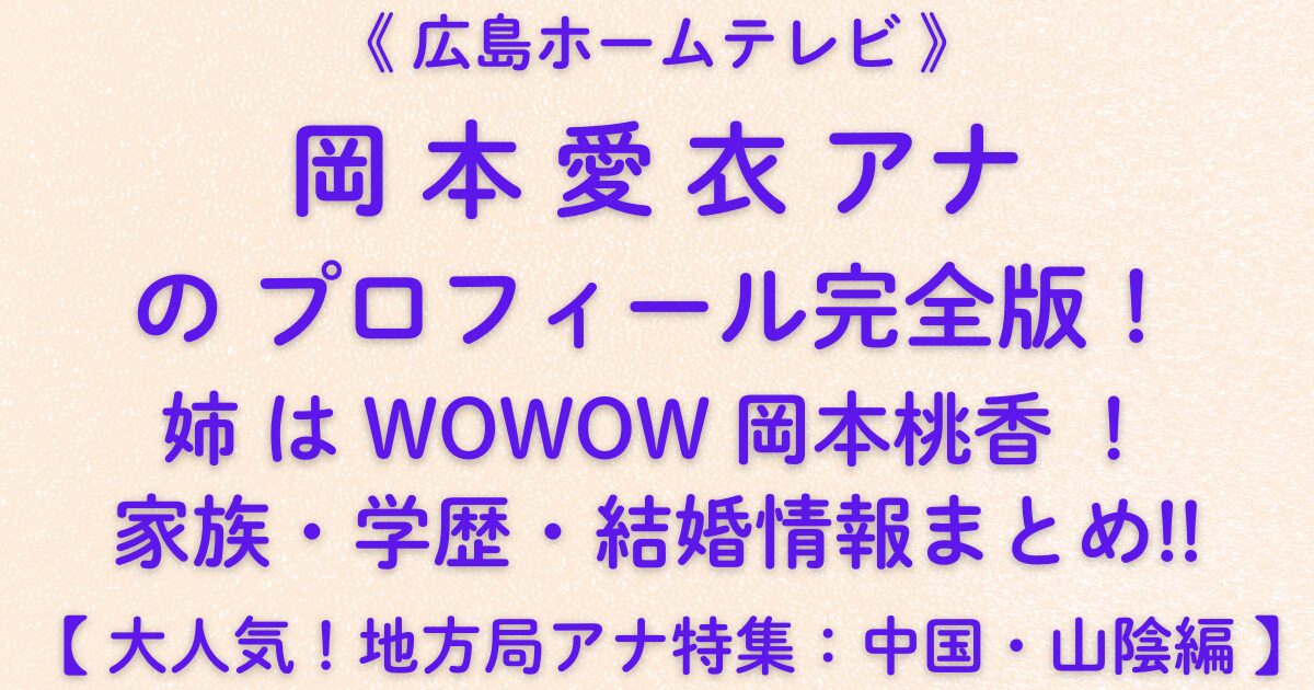 《広島ホームテレビ》岡本愛衣アナのプロフィール完全版!姉はWOWOW岡本桃香!家族・学歴・結婚情報まとめ!!【 大人気!地方局アナ特集:中国・山陰編 】