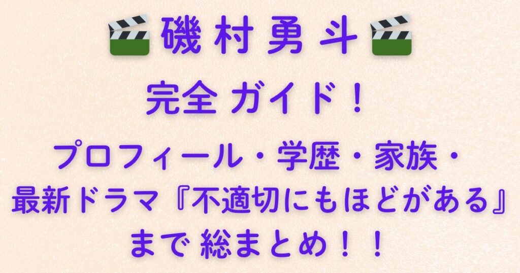 🎬磯村勇斗🎬 完全ガイド!プロフィール・学歴・家族・最新ドラマ『不適切にもほどがある』まで総まとめ!!