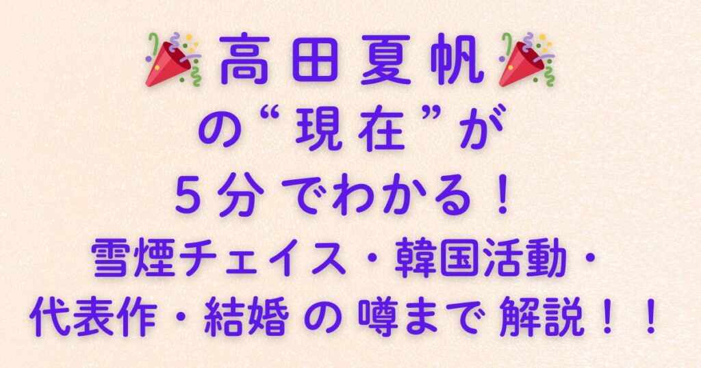 🎉高田夏帆🎉の現在が5分でわかる!雪煙チェイス・韓国活動・代表作・結婚の噂まで解説!!