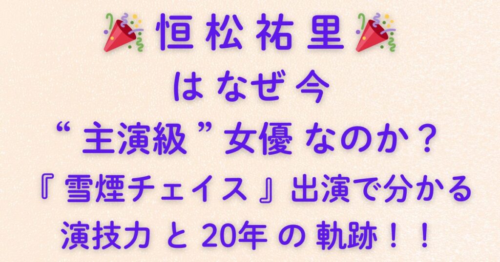 子役時代から活躍し続け、気づけばキャリア20年──。 今、女優・恒松祐里さんが“主演級女優”として強い注目を集めています。 その理由は話題作への出演数だけではありません。 NHK朝ドラや大河、Netflixの世界的ヒット作、そして2026年1月放送の東野圭吾ス... -
